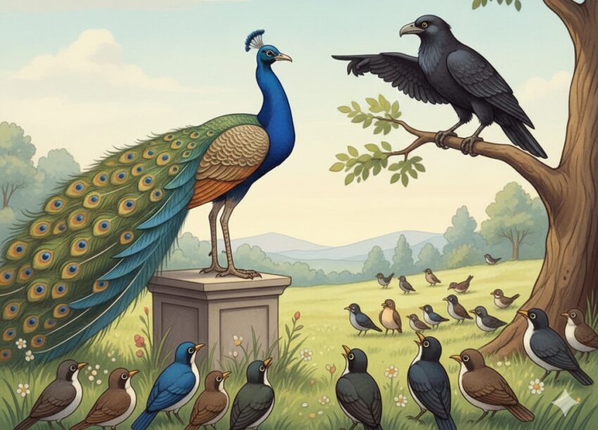 イソップ寓話集の「孔雀と黒丸鳥」を読んで、このように感じました。